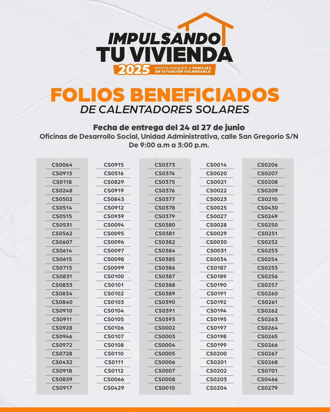 Folios beneficiados del programa “Impulsando tu Vivienda” | Calentadores Solares