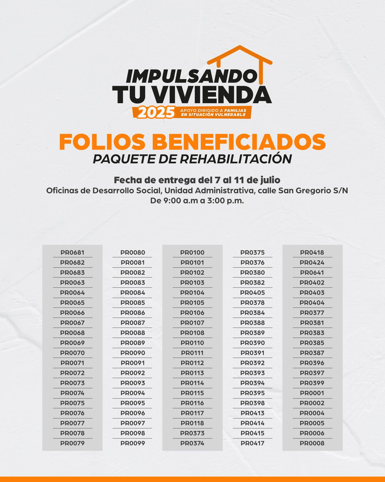 Folios beneficiados del programa “Impulsando tu Vivienda” | Paquete de rehabilitación