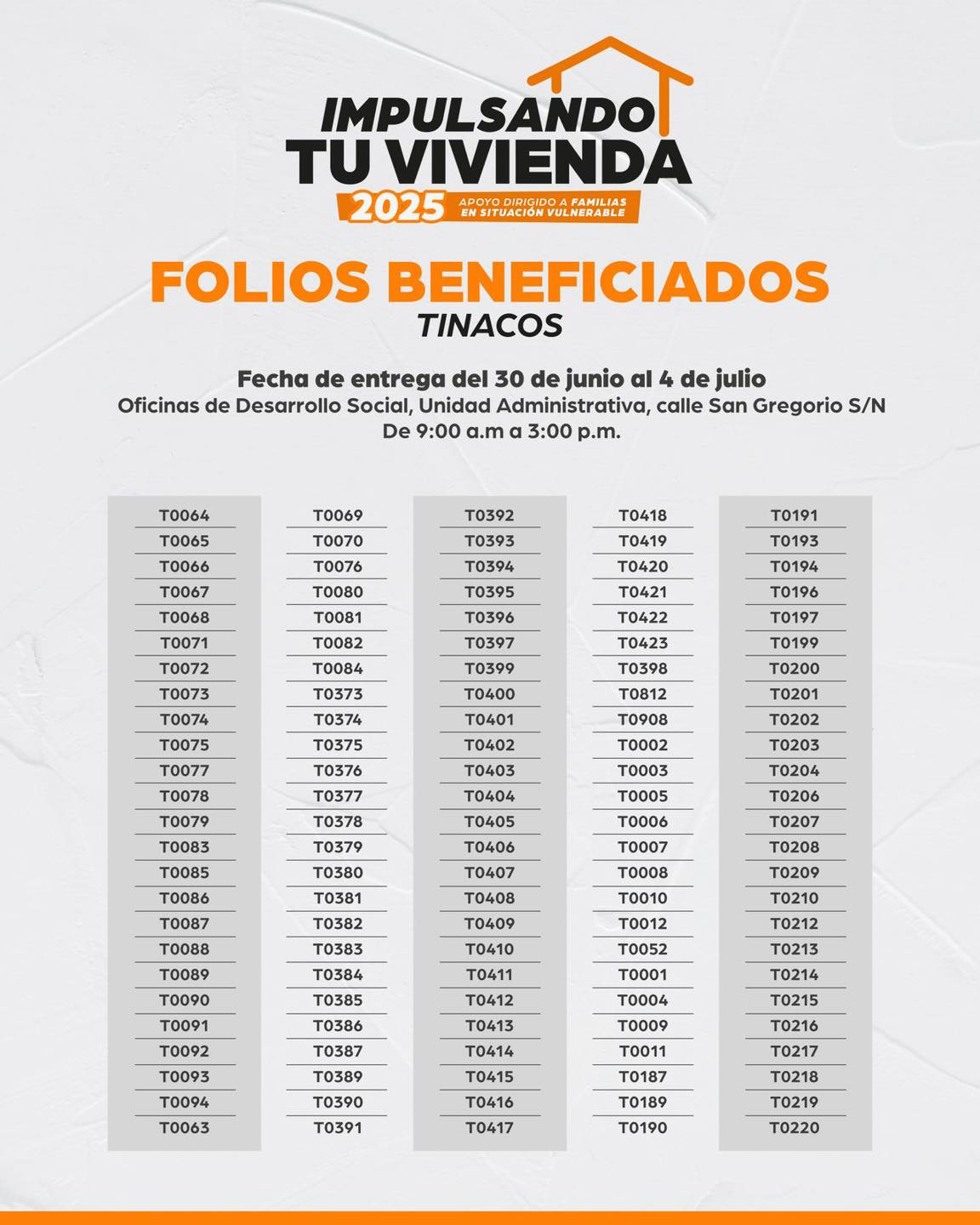 Folios beneficiados del programa “Impulsando tu Vivienda” | Tinacos