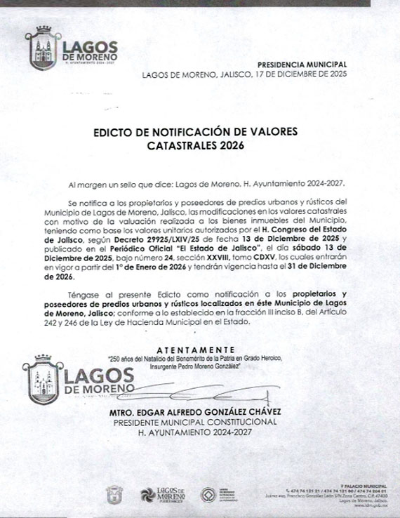 Ley de Ingresos de Lagos de Moreno, ejercicio fiscal 2026